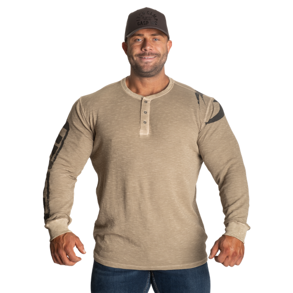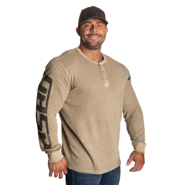 Thermal Henley は、約10年ぶりに復活した待望のアイテムです。古き良きヘンリーネックのシルエットは、ジムの後のカジュアルな外出でも快適さをキープ。柔らかなウォッシュド感の生地は、GASP アスリートの体に合わせて設計されており、着るだけで自信と自由さが漂います。