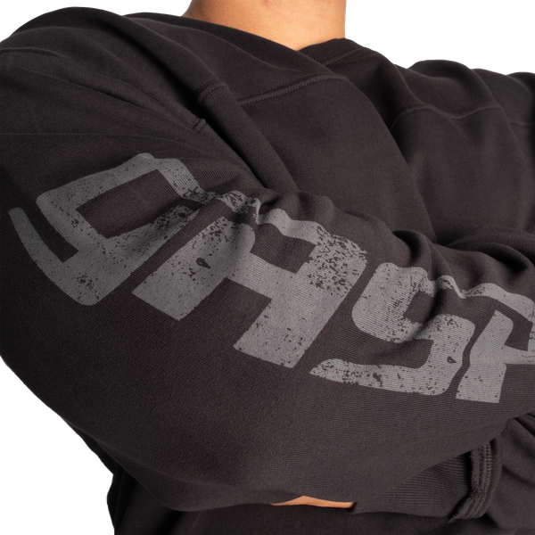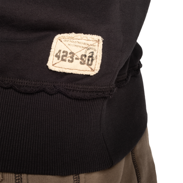 Throwback Sweaterは、背面にアイアンキャンプのグラフィック、右袖にクラシックなGASPロゴが配された、ブランドらしい存在感のある一枚です。ポリ+コットンの混紡素材を使用しており、何度洗ってもシルエットと色味が保たれます。