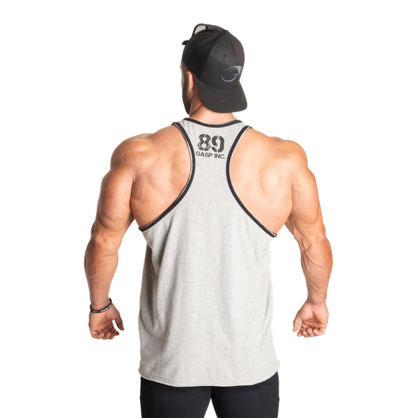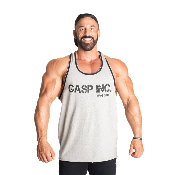 レイサーバックの大胆なラインと、裏表に施されたGASPロゴがアクセントに。裾はロウハム加工で、コントラストのある裏地が光ります。シンプルながらも存在感のある一枚で、ストリートでもカジュアルシーンでも自在にコーディネートできます。