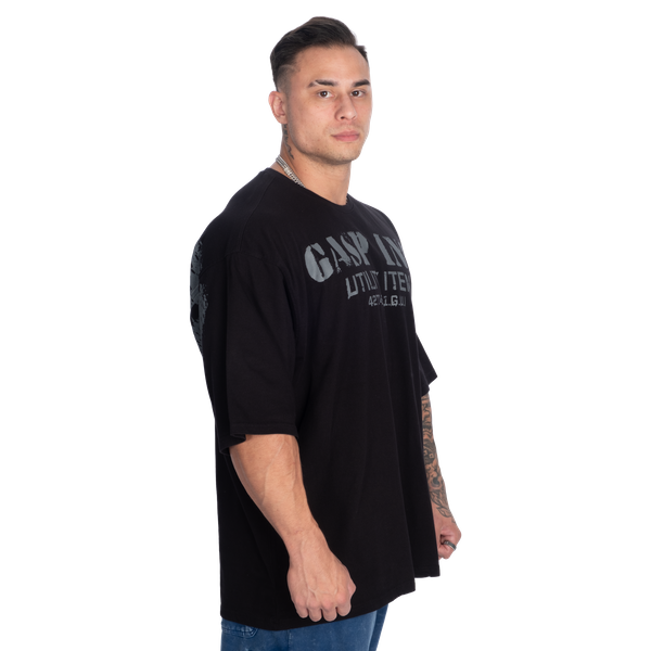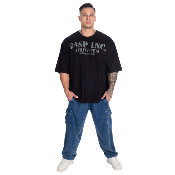 フロントには大胆な “GASP INC. Utility Item” のプリントが施され、バックには大きくディストレス加工された GASP のロゴが配されており、着るだけで瞬時に「アイアン」コミュニティの一員であることをアピールできます。妥協なし、手抜きなし——プレッシャーがかかる場面でもパフォーマンスを発揮し、時間が経つほどに味わいが増すデザインです。