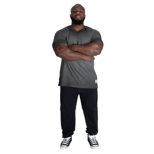 当ブランドのストリートティーは、標準モデルよりもやや長めの丈設計。袖は少し短めに仕上げ、ウエスト周りはリラックス感を保ちつつ、肩と胸元はタイトに絞り込むことで、筋肉質なシルエットを演出します。