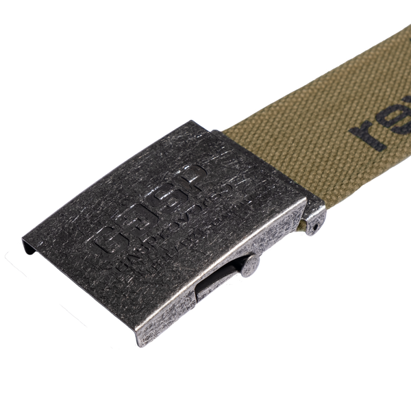 - ヘビーキャンバス素材のベルトに、ヴィンテージ感あふれる「アーミーバックル」を採用。