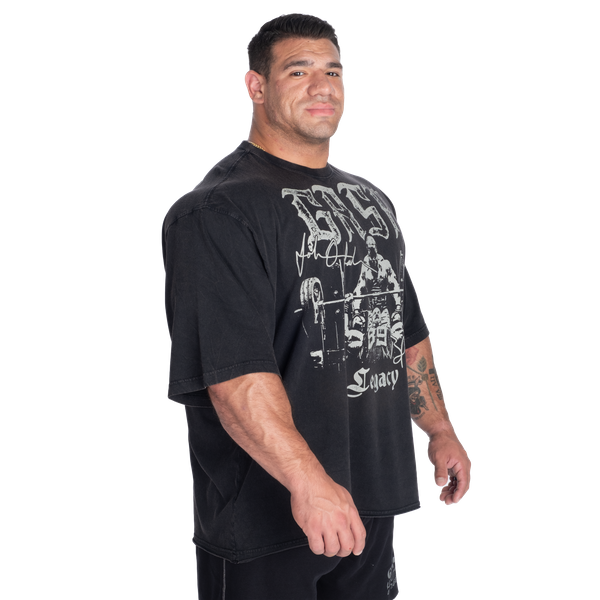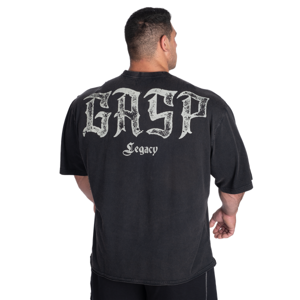 前面には「Branch & Johnnie」の大胆なロゴとサインがプリントされ、互いに刺激し合いながらスポーツの限界を押し上げた二人のレジェンドへの敬意が込められています。背面に配置されたオーバーサイズの「GASP Legacy」ロゴは、ボディビルディング史に刻まれたGASPの遺産として、このティーを際立たせます。